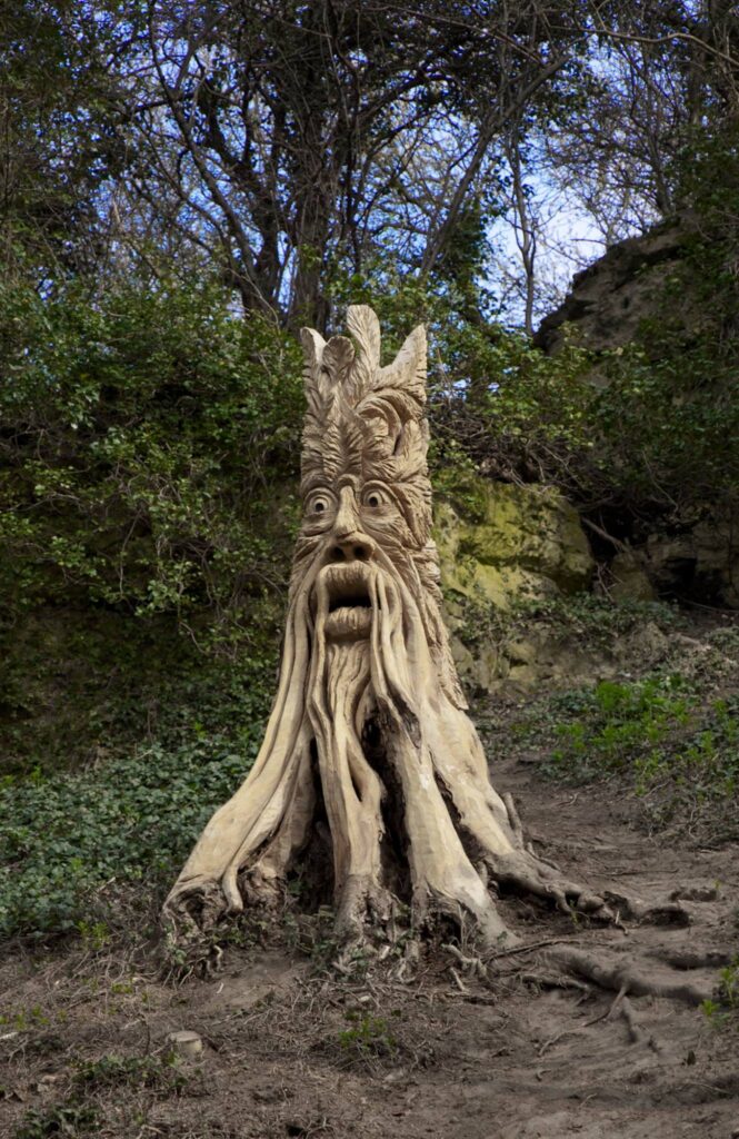 Furthermore, Craggs developed a distinctive approach that blends environmental sensitivity with large scale visual impact. He is widely known for creating wildlife scenes, folklore figures and strong symbolic compositions that grow out of the material rather than sit on top of it. Many of his pieces emerge from storm-damaged trees or timber removed for safety reasons, which reinforces the idea of giving something discarded a second life. This attitude has become a recognizable thread running through his portfolio.