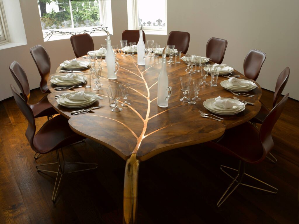 His three‑legged Trine chairs demonstrate his willingness to embrace cutting‑edge technology. Their internal metal connections are adapted from technology originally developed for wind turbine blades in Hawaii. The chairs appear enigmatically balanced, challenging assumptions about what furniture can look like while remaining perfectly functional.