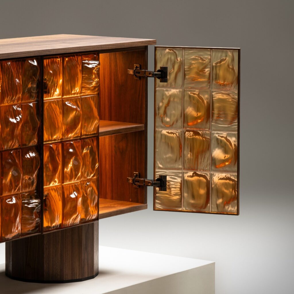 Across cabinets, tables, and tiled structures, REM Atelier’s furniture sits in that rare zone where craftsmanship is not decoration – it is the main structure of the idea. The studio has shown work at international fairs and exhibitions including Design Miami and Collectible in Brussels, reinforcing its position in the collectible-design world rather than conventional product furniture.