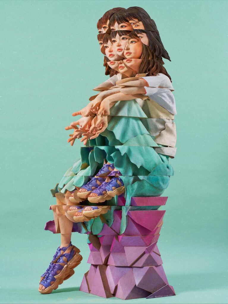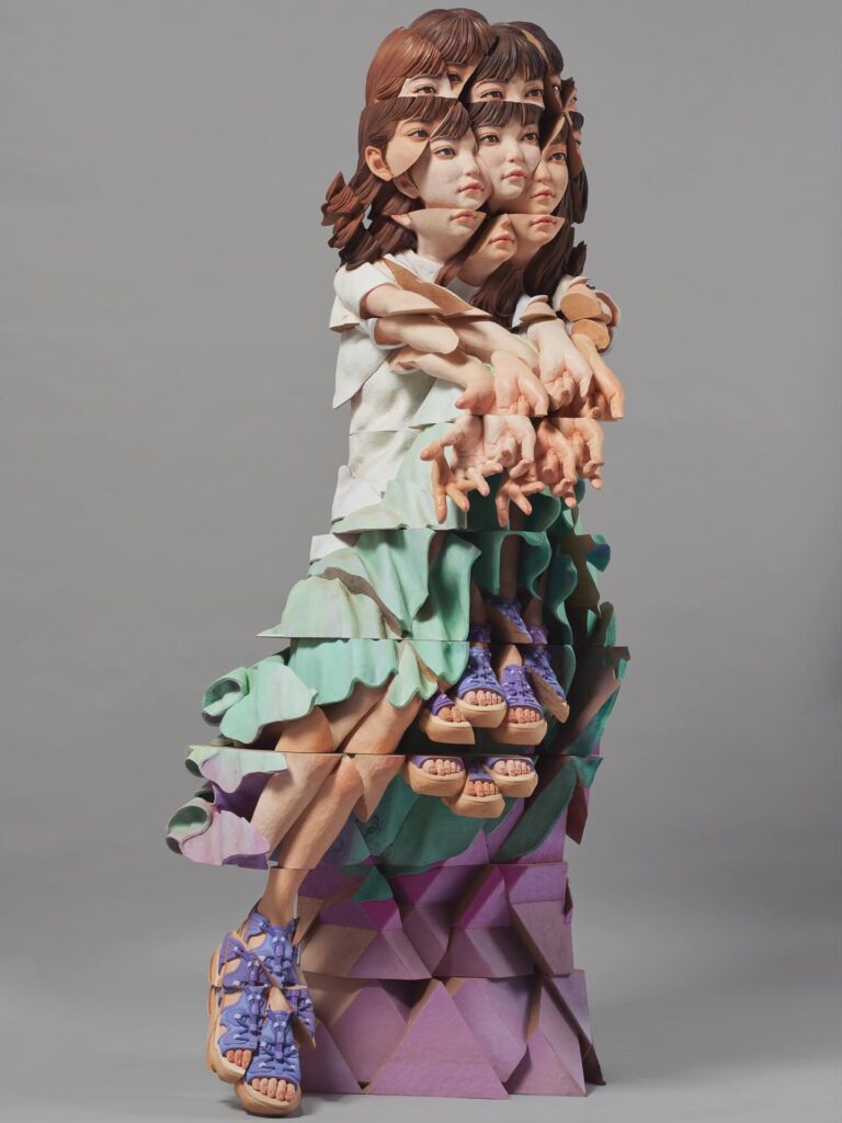 At the center of it all is patience and control: a dense block becomes cloth folds, skin, hair, and then something less literal – a carved portrait of inner contradiction. Kanemaki’s sculptures look like people caught mid-thought, except the thought is visible on the surface, multiplied and turned outward. They stay with you because they turn a familiar subject – the human figure – into a map of unstable emotions, where the clean outline of a person is never the whole story.