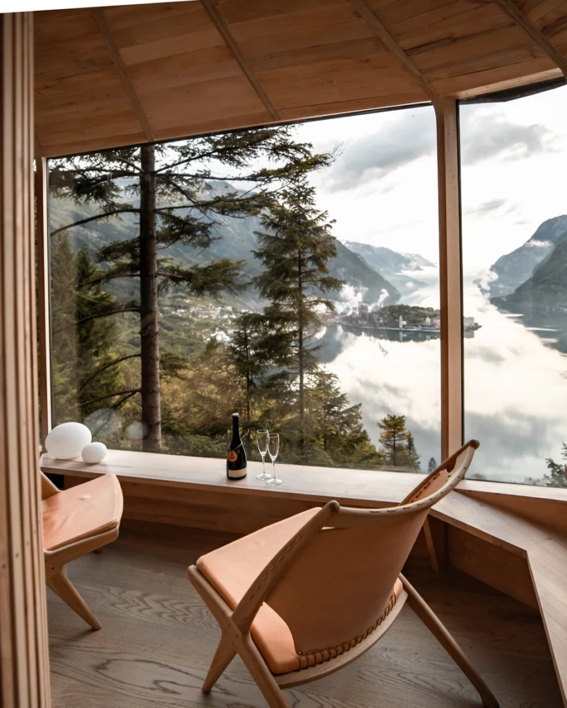 Helen & Hard’s later Woodnest II work describes upgrades that push comfort further, including a bathtub, a panoramic front, and a master bed designed to lift and retract into the ceiling during the day. It reads like the same concept, refined with a sharper hospitality brief.
